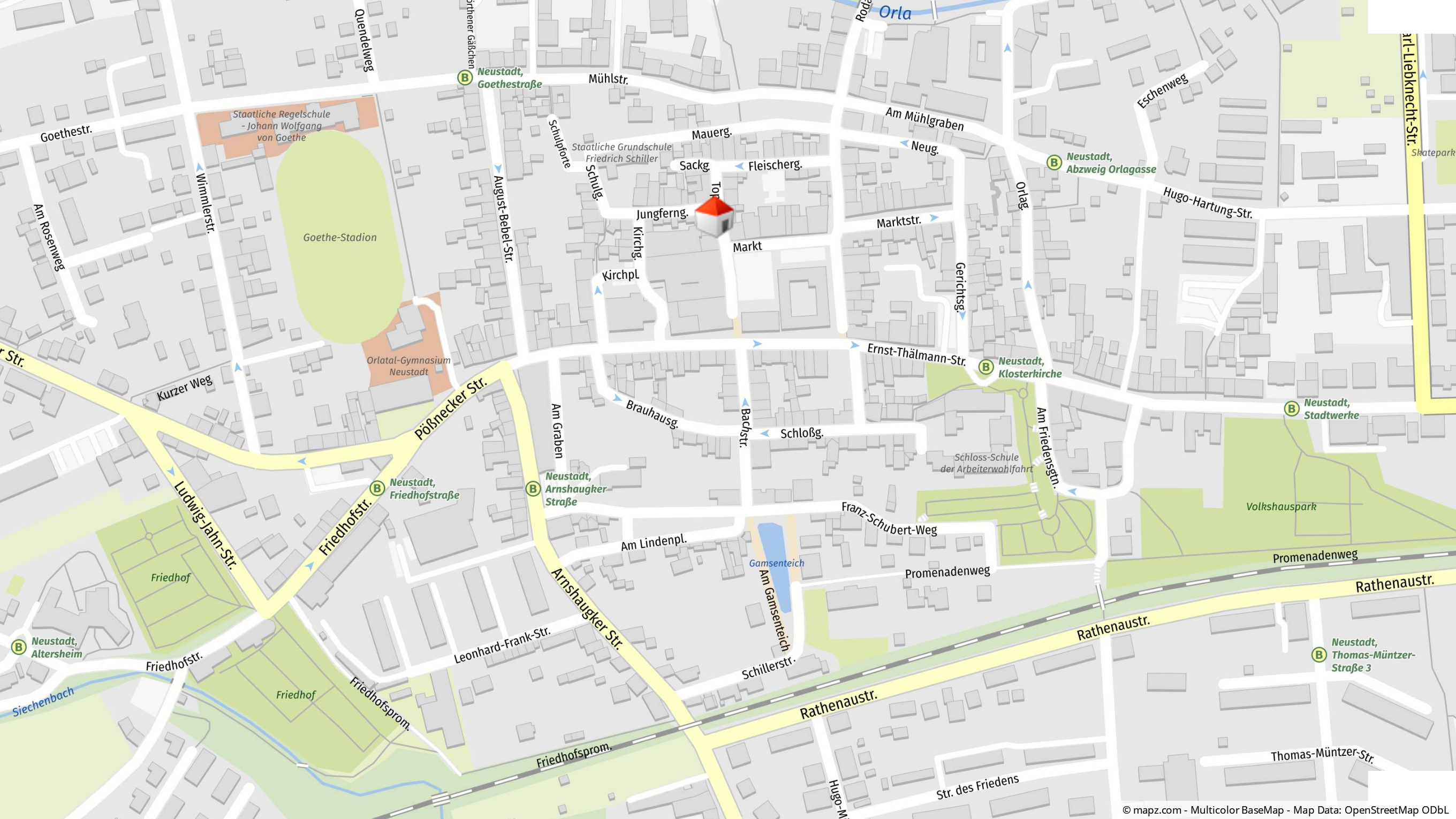 Neustadt an der Orla ist eine historische Kleinstadt im Osten Thüringens, die zwischen den Städten Jena, Gera und Saalfeld liegt. Sie gehört zum Saale-Orla-Kreis und hat etwa 8.000 Einwohner. Die Stadt ist bekannt für ihre gut erhaltene Altstadt, die von malerischen Fachwerkhäusern, alten Bürgerhäusern und einer Vielzahl von Baudenkmälern geprägt ist. Der zentrale Marktplatz ist das Herz der Stadt und besticht durch seine mittelalterliche Atmosphäre. Hier finden sich das Rathaus im Renaissance-Stil und das berühmte Lutherhaus, in dem Martin Luther 1530 übernachtete. Die Stadtkirche St. Johannis, eine beeindruckende gotische Hallenkirche, prägt ebenfalls das Stadtbild und ist ein beliebtes Ziel für Kulturinteressierte. Neustadt an der Orla bietet eine gute Infrastruktur mit Einkaufsmöglichkeiten, Restaurants, Schulen und medizinischen Einrichtungen, was es zu einem attraktiven Wohnort macht. Die Stadt ist zudem von einer reizvollen Natur umgeben, die zu Wanderungen und Ausflügen in die Umgebung einlädt. Die Nähe zur Orla, einem kleinen Fluss, und das grüne Umland bieten viele Möglichkeiten zur Erholung und Freizeitgestaltung. Verkehrstechnisch ist Neustadt an der Orla gut angebunden: Ãber die BundesstraÃen B281 und B88 sind gröÃere Städte wie Jena oder Gera gut erreichbar, und auch das Netz des öffentlichen Nahverkehrs bietet regelmäÃige Verbindungen in die umliegenden Regionen. Insgesamt verbindet Neustadt an der Orla historisches Flair mit modernem Wohnkomfort und bietet damit eine hohe Lebensqualität in einer attraktiven Umgebung.